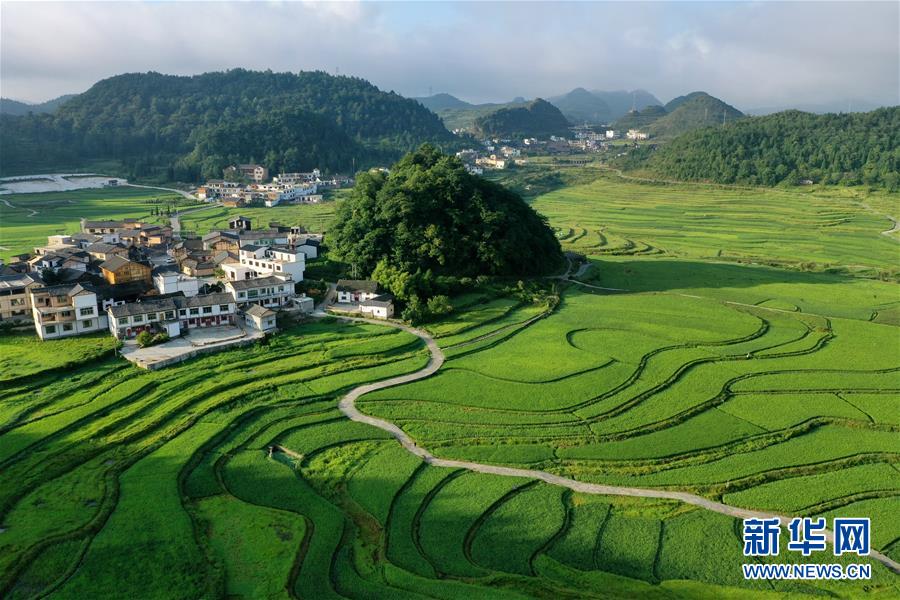 高坡乡晨景(7月28日摄,无人机照片)。 夏日时节,贵州省贵阳市花溪区高坡乡境内层峦叠嶂、满目翠绿,独特的高原景观吸引不少游客前来观光旅游。 新华社记者 刘续 摄