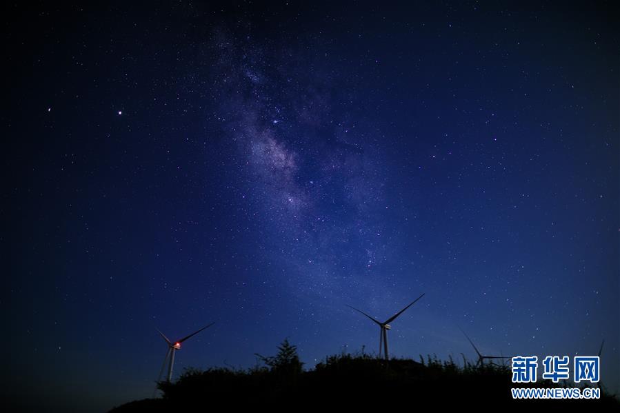 星空下的高坡乡一景(7月27日摄)。 夏日时节,贵州省贵阳市花溪区高坡乡境内层峦叠嶂、满目翠绿,独特的高原景观吸引不少游客前来观光旅游。 新华社记者 刘续 摄