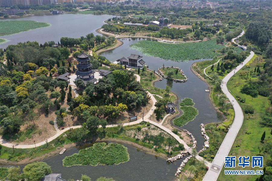 这是7月30日拍摄的河北省河间市瀛州公园一角(无人机照片)。