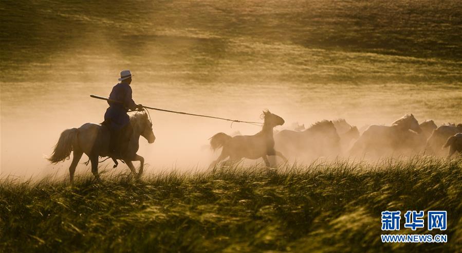 7月31日,一名套马手正在套马。 当日,内蒙古西乌珠穆沁旗在巴彦胡舒苏木白马繁育基地的草原上进行套马活动,向广大游客展示套马技艺和草原民俗文化。 新华社记者连振摄