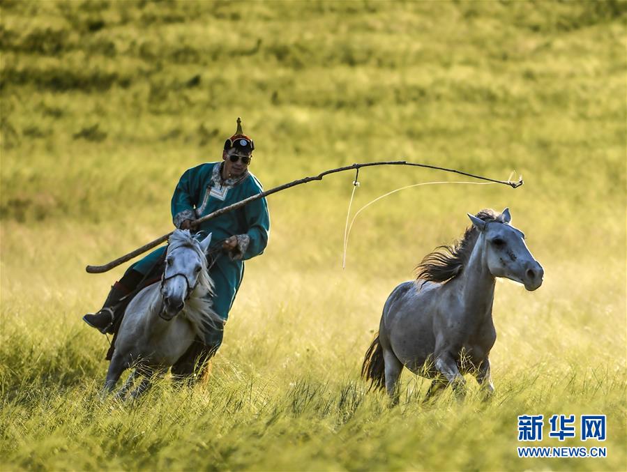 7月31日,一名套马手正在套马。 当日,内蒙古西乌珠穆沁旗在巴彦胡舒苏木白马繁育基地的草原上进行套马活动,向广大游客展示套马技艺和草原民俗文化。 新华社记者彭源摄