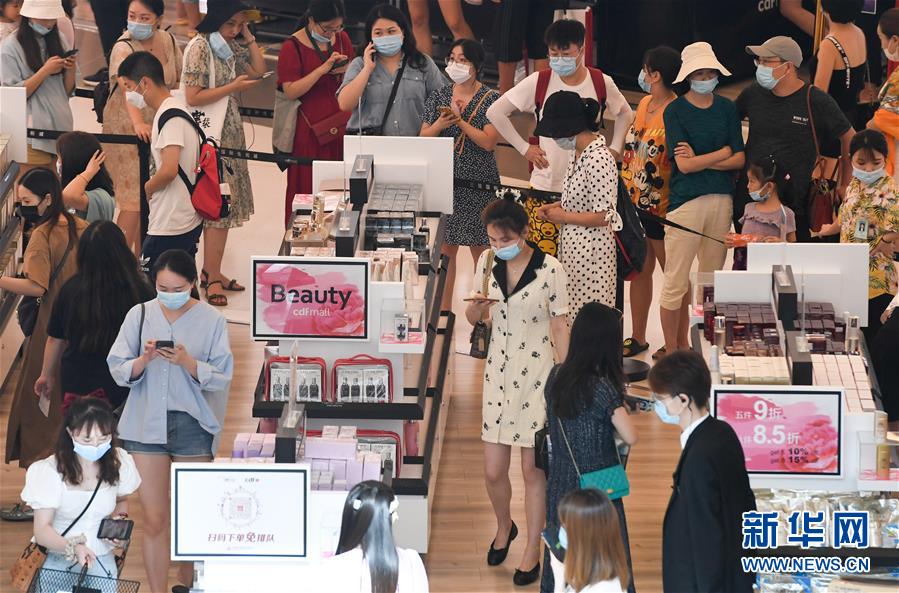 8月6日,游客在三亚国际免税城购物。新华社记者 杨冠宇 摄