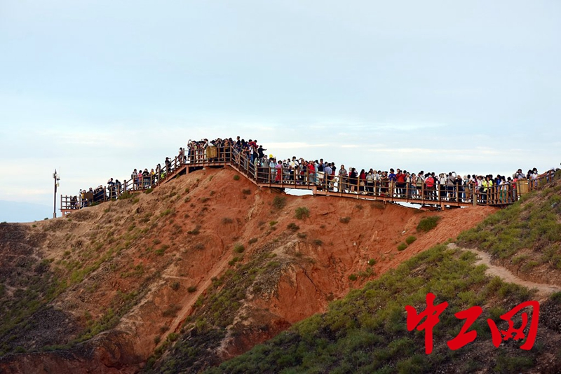 2020年8月7日,甘肃张掖,大批游客在七彩丹霞景区观光游览。蒙钟德/视觉中国