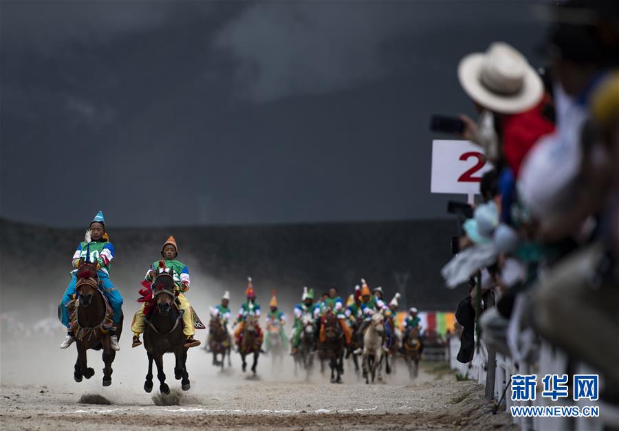 8月10日,骑手驰骋在当雄县赛马场。新华社记者 普布扎西 摄
