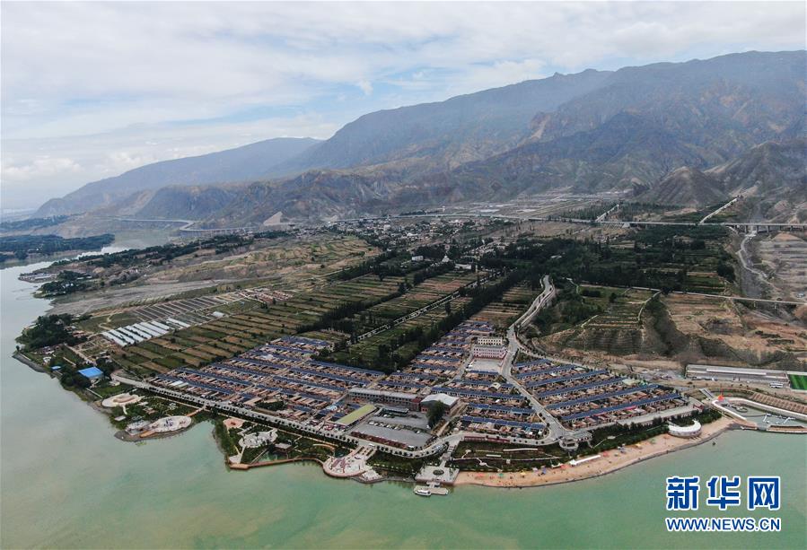 这是8月11日拍摄的尖扎县昂拉乡德吉村全貌(无人机照片)。 地处黄河岸边的青海省黄南藏族自治州尖扎县昂拉乡德吉村是一个易地搬迁村,2017年搬迁完成后,德吉村依托区位优势,积极探索扶贫易地搬迁与乡村振兴战略相结合,培育以乡村旅游为龙头,文化、光伏等产业深度融合的扶贫特色产业。如今的德吉村,休闲广场、码头、露天沙滩、花海、农家乐、小吃广场等旅游产业项目一应俱全。2020年7月,文化和旅游部、国家发展改革委确定了第二批拟入选全国乡村旅游重点村名单,德吉村名列其中,成为当地的旅游名片。 新华社记者 张龙 摄