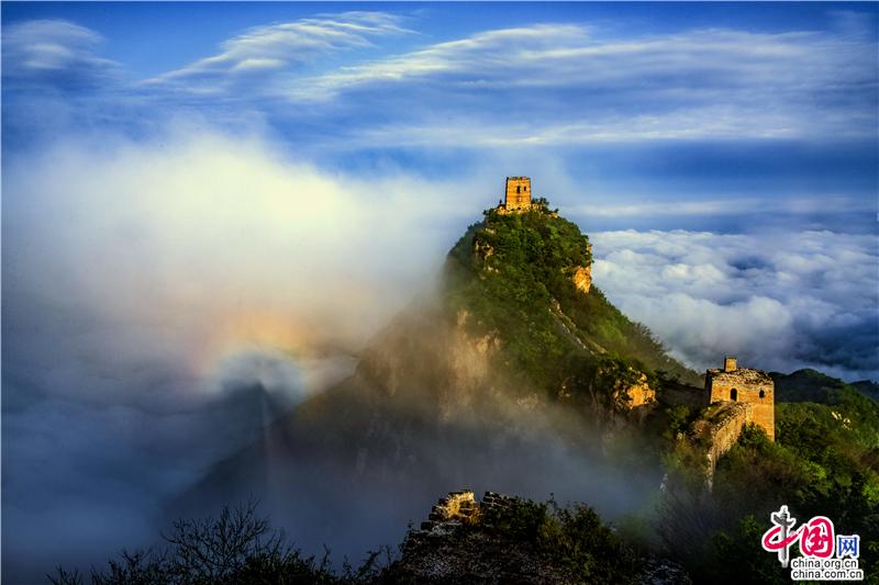佛光再现,登高望远,群山环抱,长城高耸、气势磅礴。不由想起“夫君子之行,静以修身,俭以养德。非淡泊无以明志, 非宁静无以致远。”于是感到摄影创作、修心养性,需要宁静。(纪正权摄)