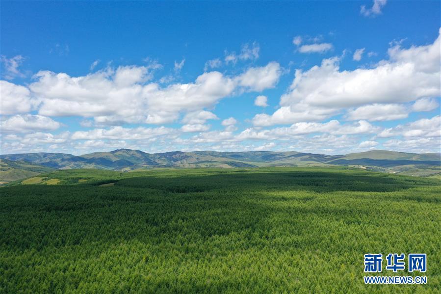这是8月13日拍摄的位于克什克腾旗的桦木沟国家森林公园风景(无人机照片)。 克什克腾旗位于内蒙古自治区赤峰市西北部,境内的湖泊、河流、草原、森林等自然景观,让人们流连忘返。 新华社记者 徐钦 摄