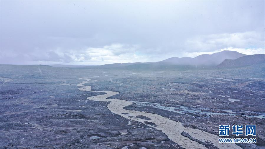 这是8月15日拍摄的岗加曲巴冰川融水形成的尕尔曲(无人机照片)。 位于青海省玉树藏族自治州的岗加曲巴冰川,坐落于长江源园区的各拉丹冬雪山东坡,从空中俯瞰,层叠的冰塔显得尤为壮观。 新华社记者 吴刚 摄