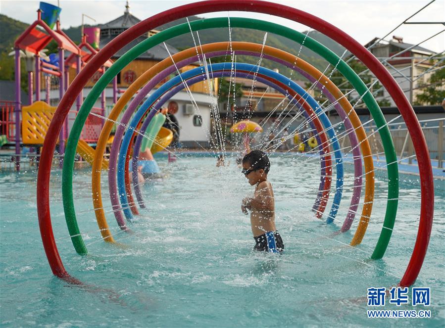8月20日,一名小游客在江西省信丰县坪地山村体验“水上乐园”项目。 新华社记者 张浩波 摄