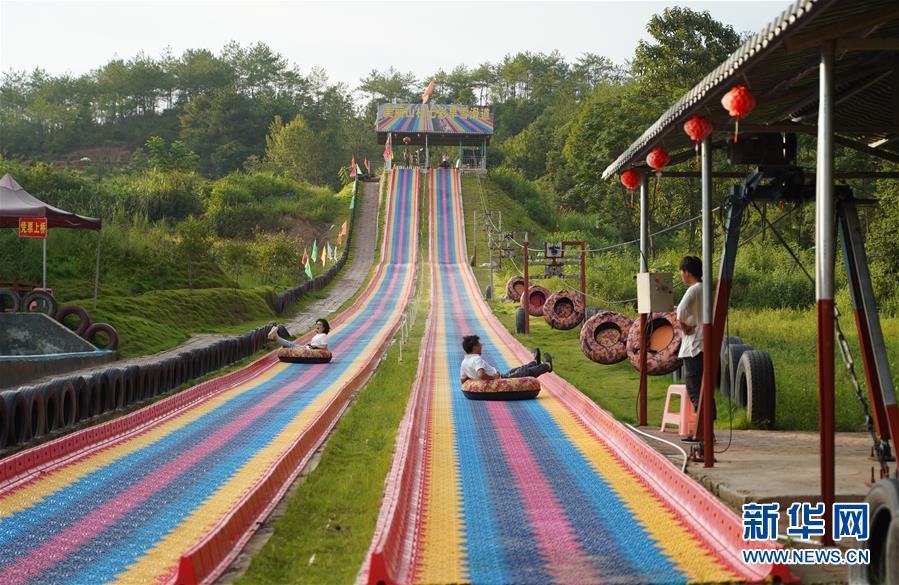 8月20日,游客在江西省信丰县坪地山村体验娱乐项目。 新华社记者 张浩波 摄