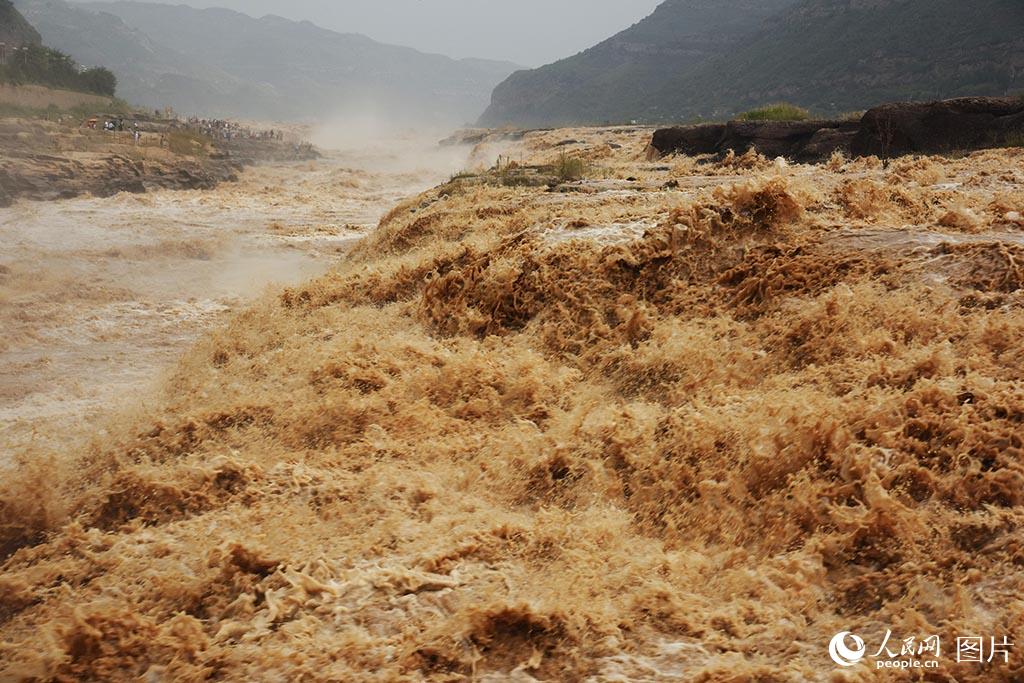 2020年8月23日受黄河上游降雨和水库泄洪影响,黄河晋陕峡谷再现洪峰过境,每秒流量达到3600立方米,山西吉县壶口景区观景桥再次被淹,为了确保游客安全,山西吉县壶口景区持续暂时关闭状态。目前,陕西宜川县壶口景区正常开放迎客。吕桂明/摄