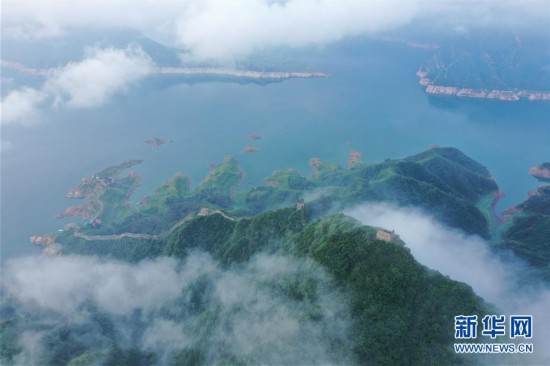 这是8月25日拍摄的河北省迁西县喜峰口西潘家口段长城云海景观(无人机照片)。 当日,河北省迁西县境内的古长城出现云海景观,古长城与云海、山峦交相辉映,美如画卷。 新华社记者 牟宇 摄