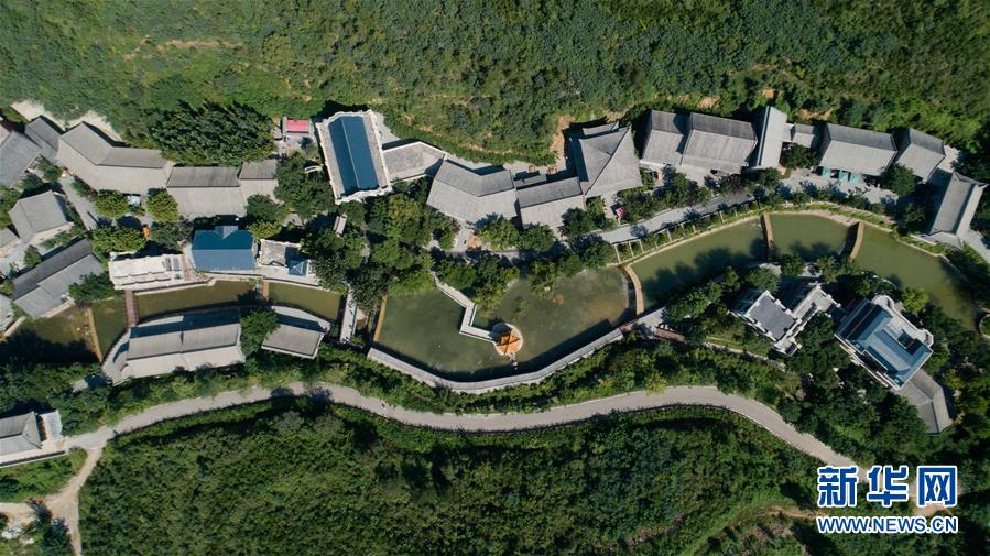 这是8月26日拍摄的位于石家庄市鹿泉区西部长青旅游度假区内的德明古镇(无人机照片) 。 新华社发(许建园 摄)