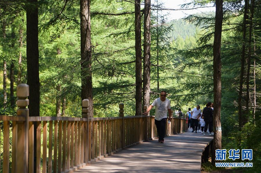 8月27日,游客在苏木山森林公园游玩。 近日,位于内蒙古自治区乌兰察布市兴和县的苏木山森林公园绿意浓浓,景色宜人。 新华社记者 李志鹏 摄