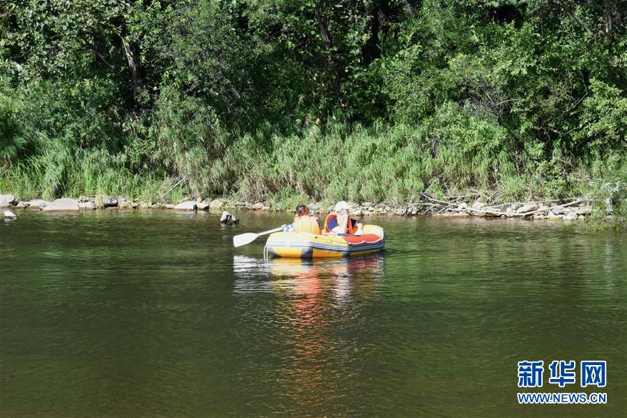 游客在黑龙江省伊春市九峰山养心谷乘坐皮划艇漂流(8月12日摄)。 新华社记者 杨喆 摄