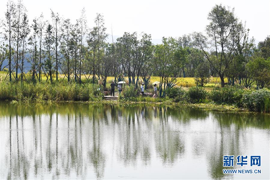 8月30日,游客在重庆广阳岛游览。新华社记者 王全超 摄