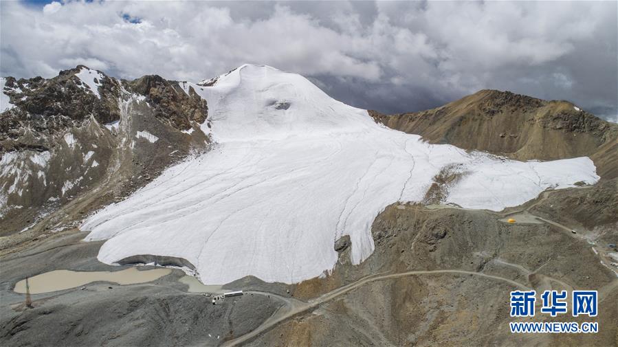 这是廓琼岗日冰川(8月30日摄,无人机照片)。 廓琼岗日冰川公园位于西藏当雄县格达乡境内,海拔约5500米,距拉萨约160公里,是一处集冰川、雪山、湖泊、草甸于一体的独具特色的自然生态旅游区。在公园内,游客可以与冰川近距离接触,并可亲身体验攀登的乐趣。 新华社记者 孙非 摄
