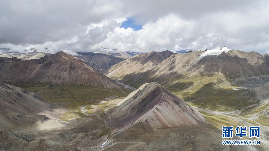 这是廓琼岗日冰川公园内一景(8月30日摄,无人机照片)。廓琼岗日冰川公园位于西藏当雄县格达乡境内,海拔约5500米,距拉萨约160公里,是一处集冰川、雪山、湖泊、草甸于一体的独具特色的自然生态旅游区。在公园内,游客可以与冰川近距离接触,并可亲身体验攀登的乐趣。新华社记者 孙非 摄