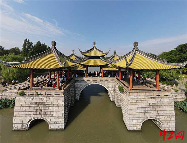 2020年9月8日,季节轮转,夏天的葱郁还未褪去,秋天的气息已扑面而来, 初秋时节,江苏扬州瘦西湖风景区风景宜人,美不胜收,吸引游客前来观光游玩。图片作者:孟德龙/视觉中国
