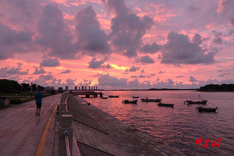 2020年9月15日,青岛,日出时分,天上云霞变幻莫测,宛如一幅幅色彩斑斓的油画和泼墨山水画,景色美不胜收。