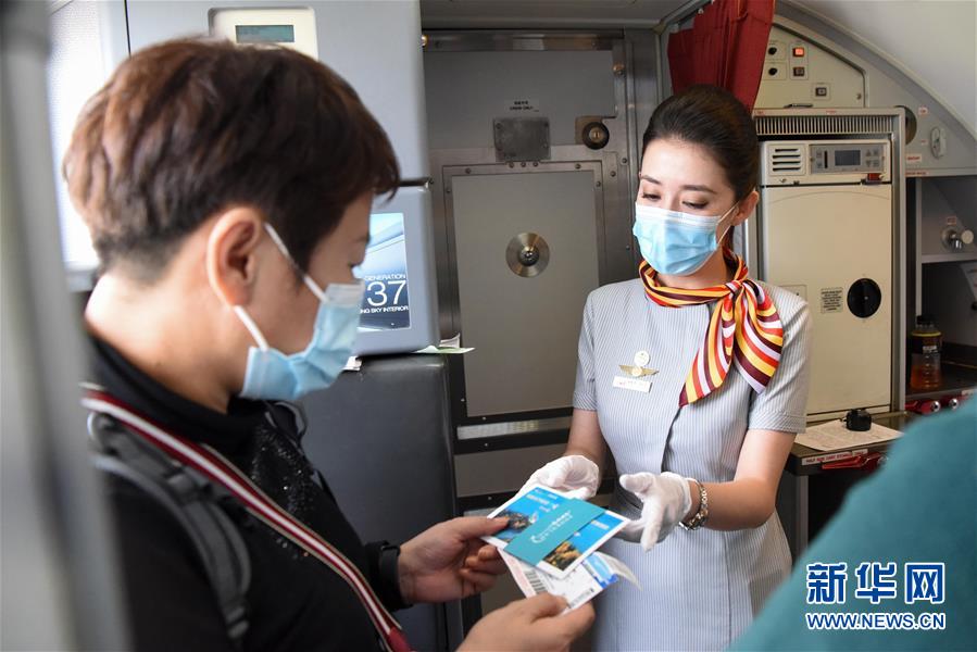 9月15日,空乘人员为每位旅客发放“喀纳斯号”首航纪念明信片。新华社记者 丁磊 摄