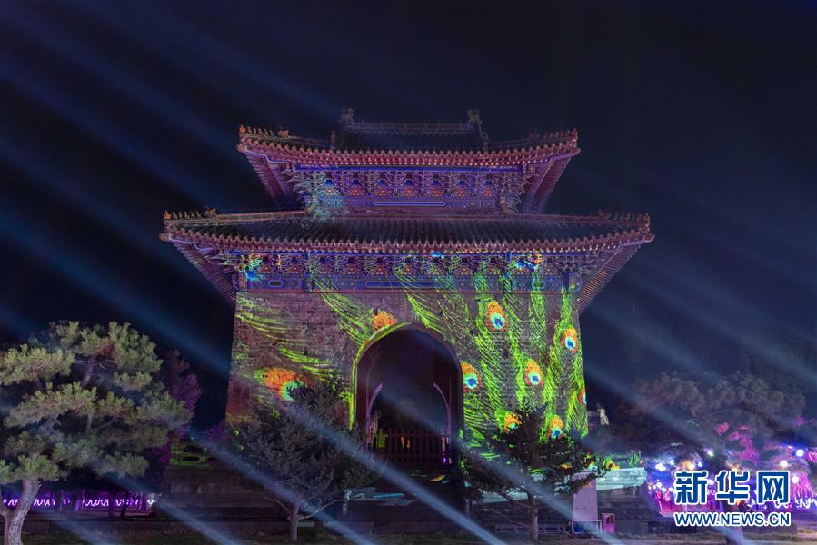 这是9月14日晚在湖北省武当山玉虚宫景区拍摄的光影秀。 大规模光影秀“玄岳之光”于近日在武当山玉虚宫开幕,古老的建筑与现代的声光电科技融合在一起,惊艳夜空。位于湖北省武当山景区的玉虚宫是武当山建筑群中最大的宫殿之一,始建于明永乐年间,规制谨严,院落重重。 新华社记者 杜华举 摄