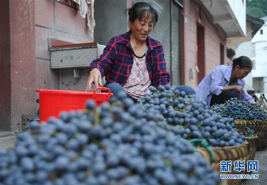 9月15日,在福建省宁德福安市穆云畲族乡溪塔村,村民分拣刺葡萄。新华社记者 宋为伟 摄