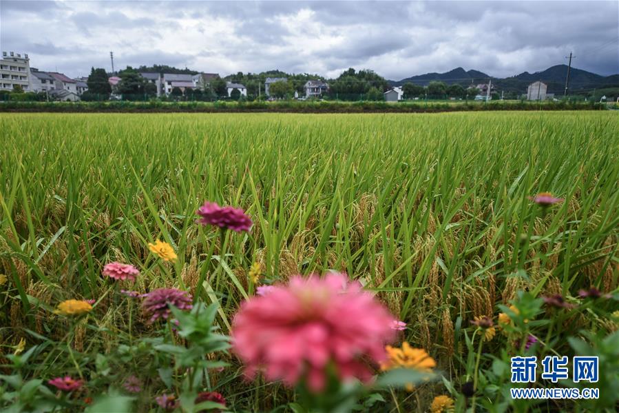 9月17日,钦堂乡的稻田边鲜花盛开。 近期,浙江省建德市钦堂乡的2000多亩水稻进入成熟期,当地举行“稻香节”,向游客展示丰收美景,推动美丽乡村特色旅游发展。 建德市钦堂乡是浙江省省级粮食主体功能区,因为独特的地理优势,这里盛产富硒大米。近年来钦堂乡着力打造集赏景、采摘、品尝、教育等为一体的乡村旅游业态。 新华社记者 徐昱 摄
