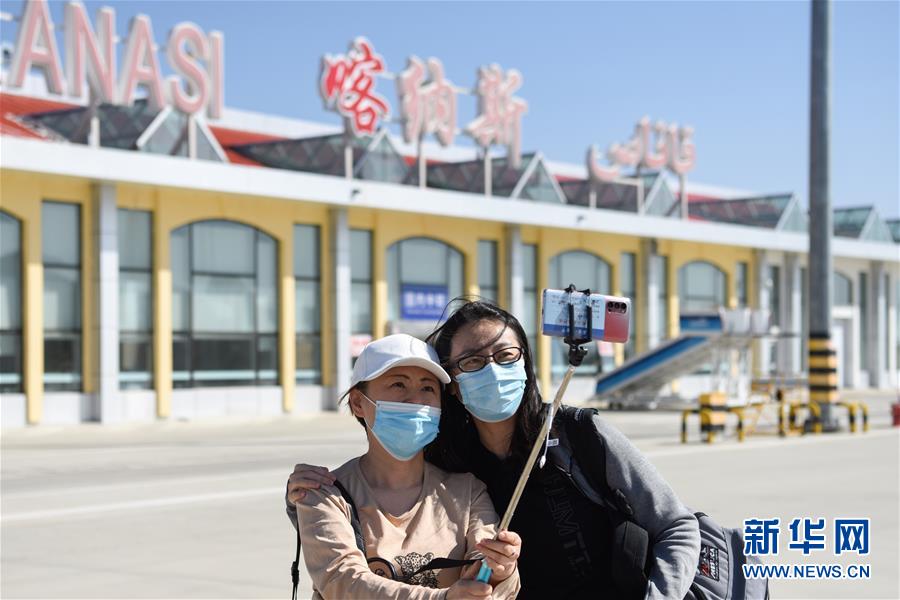 阿勒泰秋季旅游升温加速 在新疆阿勒泰地区喀纳斯机场,刚下飞机的旅客在拍照留念(9月17日摄)。 时下正值新疆秋季旅游黄金季,且新疆跨省市旅游已全面开放,阿勒泰地区在做好常态化疫情防控工作的前提下,所有A级景区对全国游客实行免门票政策,并推出多项“交通+旅游”优惠政策和丰富多彩的文旅活动,推动旅游业加速升温。 新华社记者 丁磊 摄
