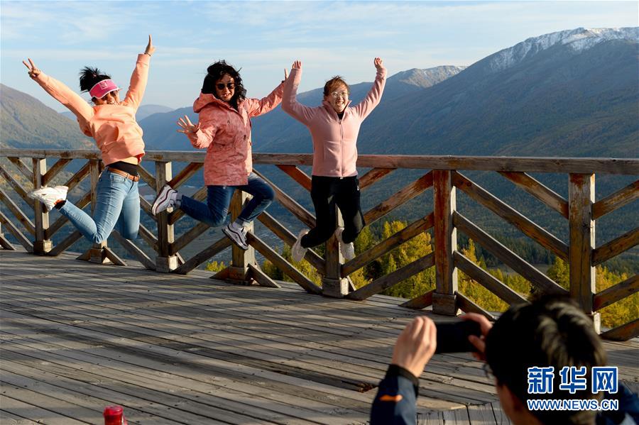 阿勒泰秋季旅游升温加速 游客在新疆阿勒泰地区喀纳斯景区游玩(9月17日摄)。 时下正值新疆秋季旅游黄金季,且新疆跨省市旅游已全面开放,阿勒泰地区在做好常态化疫情防控工作的前提下,所有A级景区对全国游客实行免门票政策,并推出多项“交通+旅游”优惠政策和丰富多彩的文旅活动,推动旅游业加速升温。 新华社记者 丁磊 摄