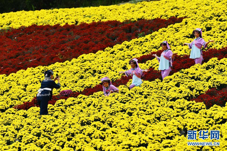 9月24日,在贵州省龙里县醒狮镇大岩村“龙湖花海”生态农业观光基地,当地少数民族群众在赏菊时留影。 近日,在位于贵州省黔南布依族苗族自治州龙里县醒狮镇大岩村的“龙湖花海”生态农业观光基地,400余亩各色菊花陆续开放,吸引各地游客前来赏菊。 据了解,“龙湖花海”生态农业观光基地是大岩村“村社合一”经济实体之一,该基地以“党支部+农户+合作社”的形式,多渠道壮大村集体经济,持续巩固脱贫攻坚成果。 新华社记者 杨文斌 摄