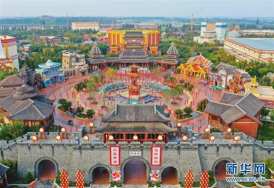 这是9月25日拍摄的邯郸市磁县方特国色春秋主题乐园(无人机照片)。新华社记者 王晓 摄