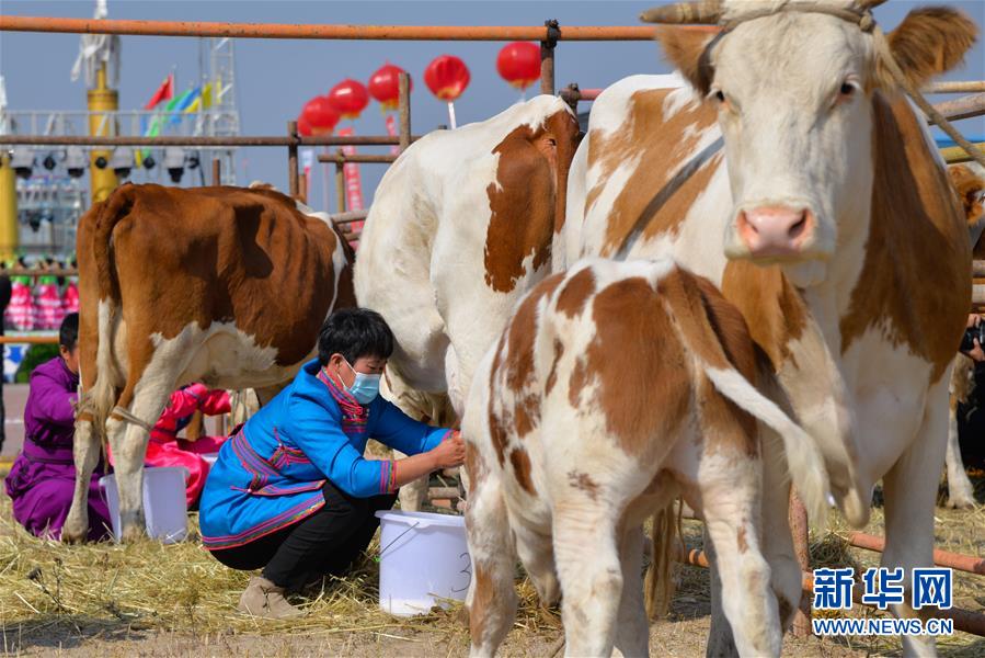 9月26日,牧民在首届内蒙古赛牛节上参加挤奶比赛。新华社记者 徐钦 摄