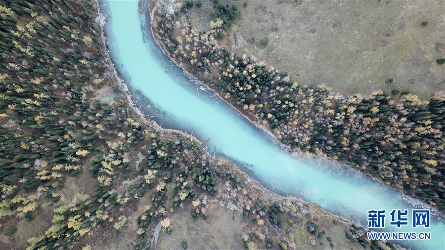 这是9月28日拍摄的喀纳斯秋景(无人机照片)。 “十一”黄金周临近,新疆喀纳斯景区进入旅游旺季。目前,新疆喀纳斯景区已采取多项措施加强旅游服务。 新华社记者 张誉东 摄
