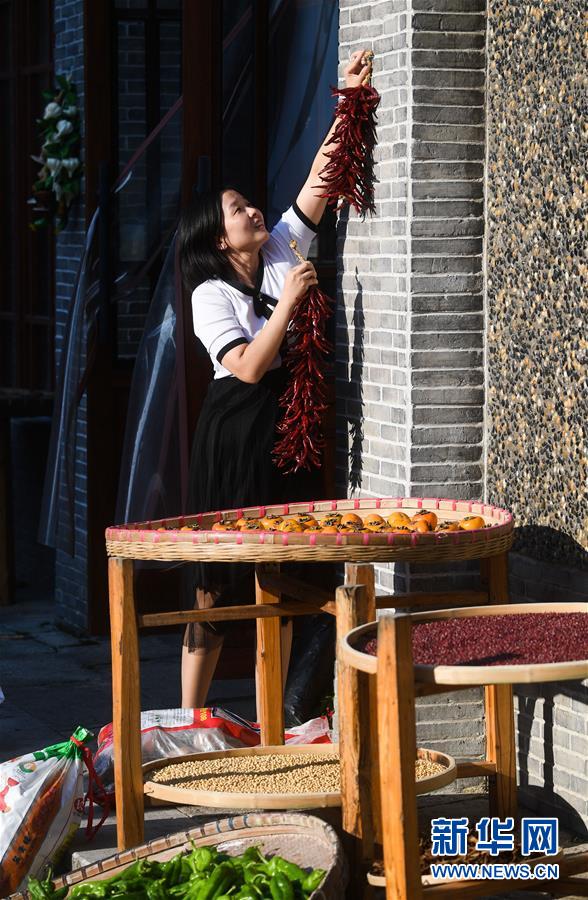 9月30日,工作人员在瓶窑老街上挂红辣椒。新华社记者 徐昱 摄
