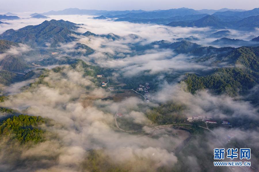 10月1日,霍山县东西溪乡云海日出景观。新华网发(徐程 摄)