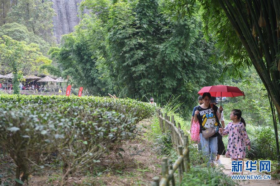 10月4日,游客在福建省武夷山风景名胜区游览。 长假期间,世界文化与自然双重遗产福建武夷山景区客流显著回升,10月1日至4日景区接待超过11万人次,旅游市场呈现繁荣有序的景象。 新华社记者 宋为伟 摄