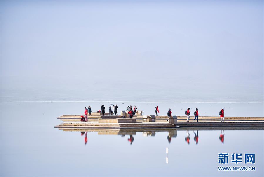 9月23日,游客在茶卡盐湖“天空之镜”景区游玩。 新华社记者 张龙 摄