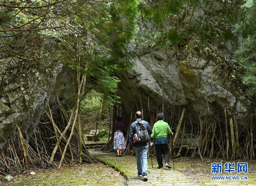 10月6日,游客在临安区清凉峰游玩。 中秋和国庆假期,不少游客来到浙江杭州临安区的山间游玩,和大自然亲密接触。 新华社记者 翁忻旸 摄
