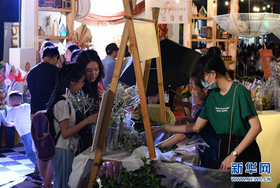 人们在海口市N次方公园的集市上选购商品(10月6日摄)。新华社记者 杨冠宇 摄