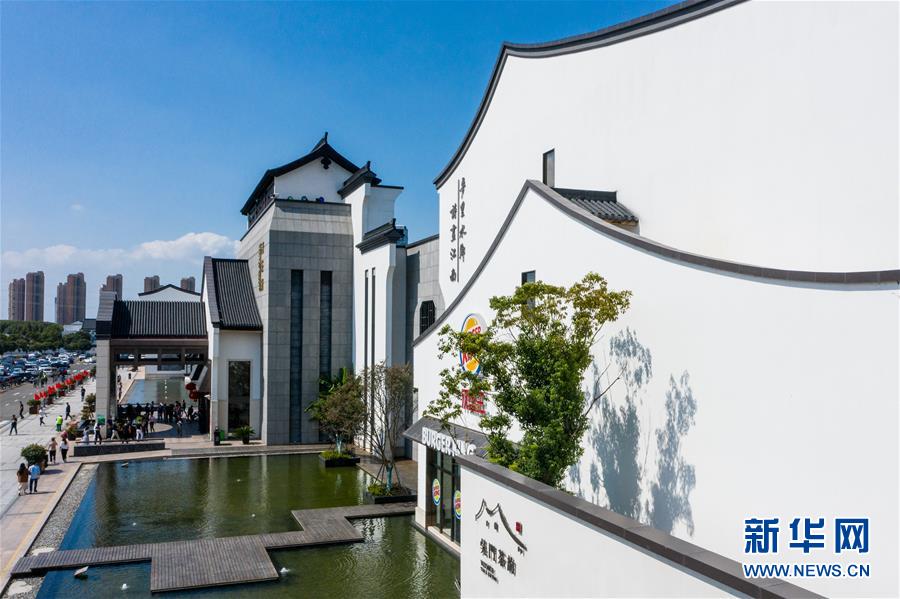 这是10月8日拍摄的阳澄湖服务区(无人机照片)。新华社记者 李博 摄