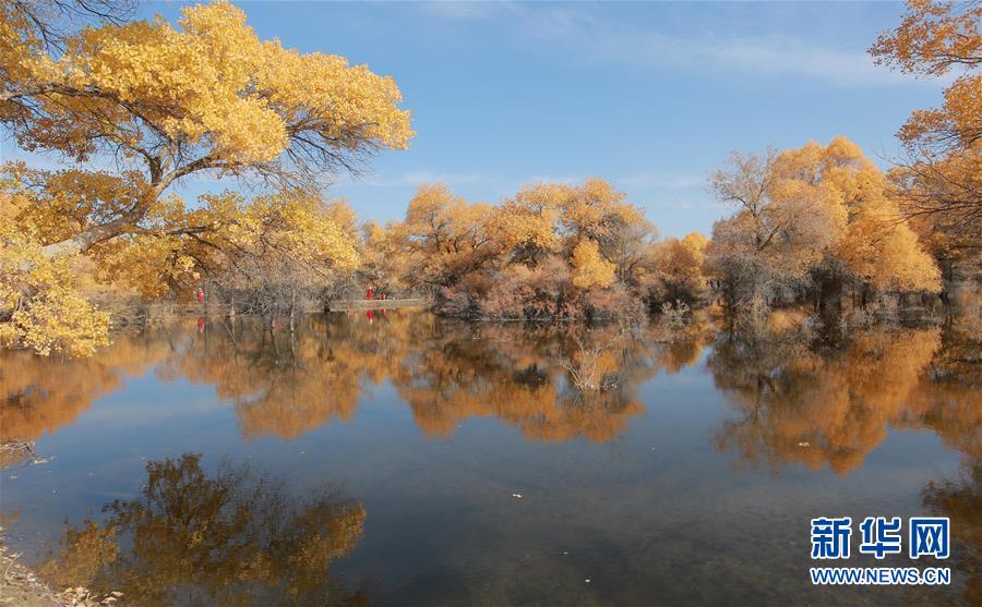10月11日拍摄的甘肃省酒泉市金塔县胡杨林景色。 金秋时节,甘肃省金塔县的胡杨林进入最佳观赏期,吸引各地游客前来观赏。 新华社发(陈礼 摄)