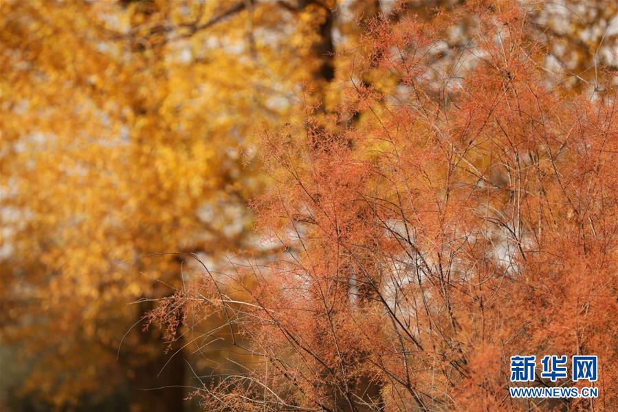 这是10月14日在甘肃省武威市民勤石羊河国家湿地公园拍摄的红柳。 又到一年金秋时,在拥有“中国沙乡”之称的甘肃省武威市民勤县,胡杨、红柳等沙生植物尽染秋色,美不胜收。 新华社记者 郭刚 摄