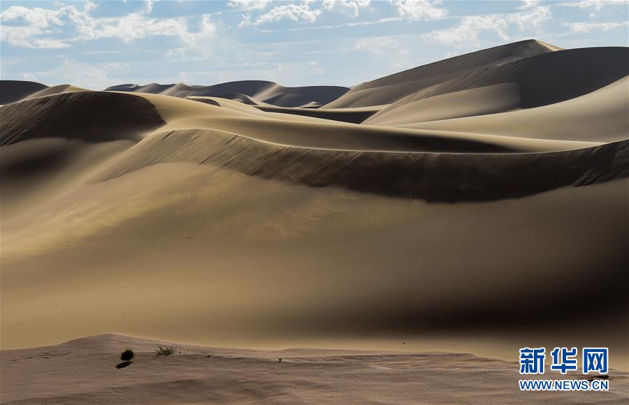 巴丹吉林沙漠风光(10月15日摄)。 巴丹吉林沙漠位于内蒙古阿拉善高原中心,高大的沙丘在秋日的映衬下焕发出金色的光泽,美不胜收。 新华社记者 刘磊 摄