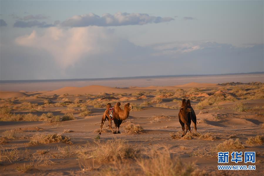巴丹吉林沙漠风光(10月15日摄)。 巴丹吉林沙漠位于内蒙古阿拉善高原中心,高大的沙丘在秋日的映衬下焕发出金色的光泽,美不胜收。 新华社记者 刘磊 摄