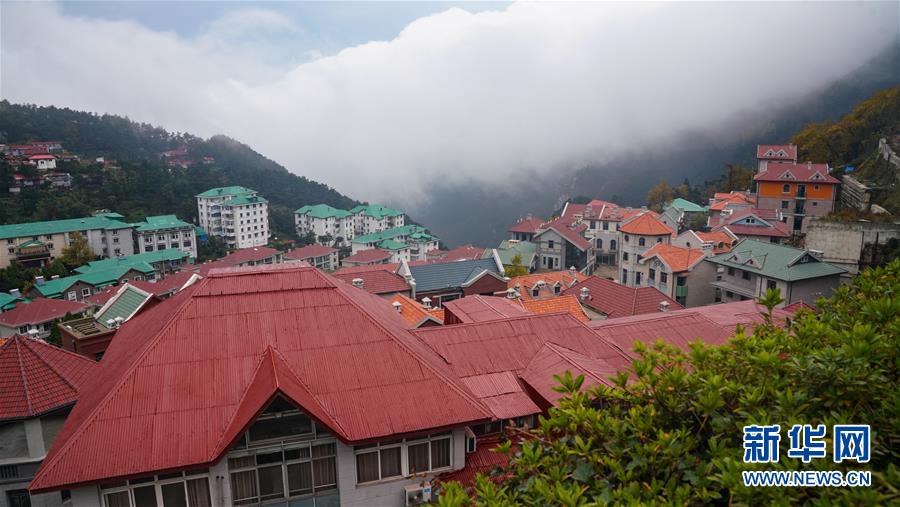 这是10月17日在庐山风景区拍摄的牯岭镇。 近日,位于江西省九江市的庐山风景区云雾缭绕,层林尽染,许多游客前来赏秋。 新华社记者 胡晨欢 摄