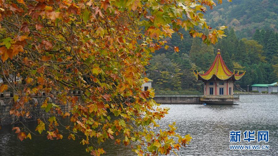 这是10月17日在庐山风景区拍摄的芦林湖。 近日,位于江西省九江市的庐山风景区云雾缭绕,层林尽染,许多游客前来赏秋。 新华社记者 胡晨欢 摄