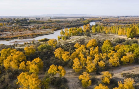 10月18日拍摄的玛纳斯国家湿地公园一景(无人机照片)。 近日,位于新疆昌吉回族自治州玛纳斯县的玛纳斯国家湿地公园景色迷人。玛纳斯湿地是候鸟的重要栖息地和繁殖地。每年秋季,数万只候鸟在此停留歇息,点缀湿地画卷。 新华社记者 丁磊 摄