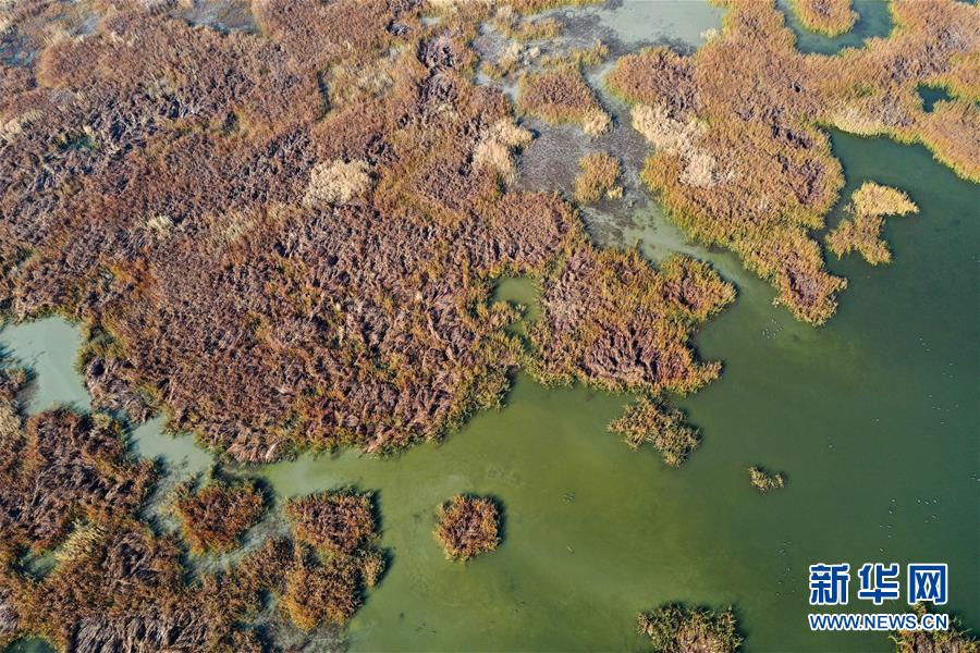 10月18日在玛纳斯国家湿地公园拍摄的芦苇荡(无人机照片)。 近日,位于新疆昌吉回族自治州玛纳斯县的玛纳斯国家湿地公园景色迷人。玛纳斯湿地是候鸟的重要栖息地和繁殖地。每年秋季,数万只候鸟在此停留歇息,点缀湿地画卷。 新华社记者 丁磊 摄