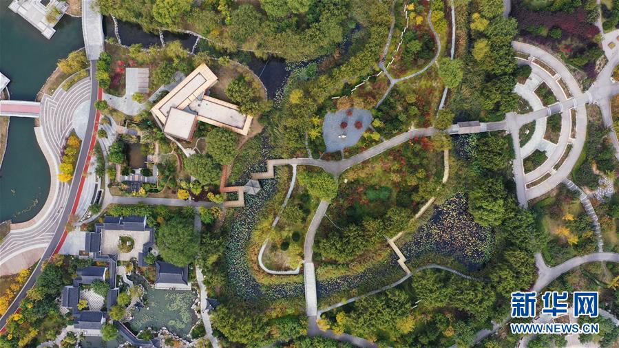 这是10月20日拍摄的唐山市南湖景区(无人机照片)。 河北省唐山市南湖景区是唐山市的“城市绿肺”,由开滦煤矿采煤沉降地经过综合治理形成。秋季,南湖景区层林尽染、花海斑斓、湖水清澈,景区建筑与水面交相辉映,美不胜收,成为市民休闲、健身的好场所。 新华社记者 牟宇 摄